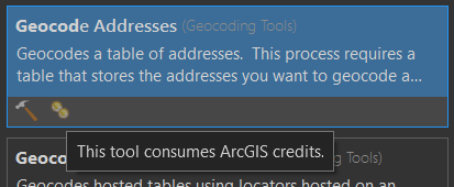 NOTE: Some ArcGIS Pro geoprocessing tools can also consume service credits. Typically, shown with a “gold” symbol.