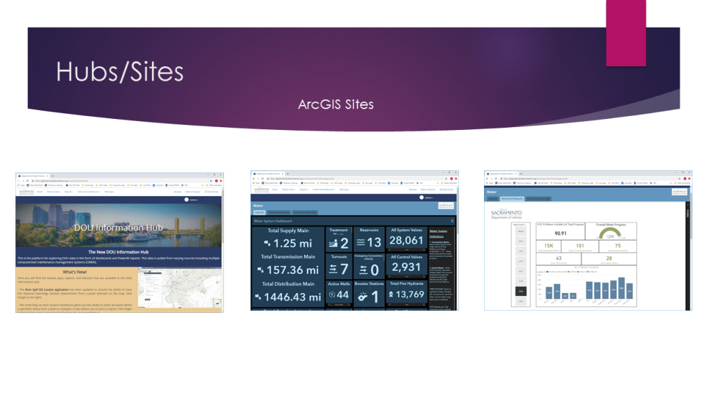 Enterprise has become a rapidly adopted method of presenting and sharing spatial and non spatial data as visualizations (mostly web map apps, but some web maps) to an organization vs the traditional “static PDF.” Users or staff are often amazed at how much more rich an interactive web map experience is vs spreadsheets, charts, and graphs (although AGOL and Enterprise can do this through operations dashboards and experience builder). Also, if this doesn’t meet all of the needs an organization can use data visualizations tools such as Power BI.